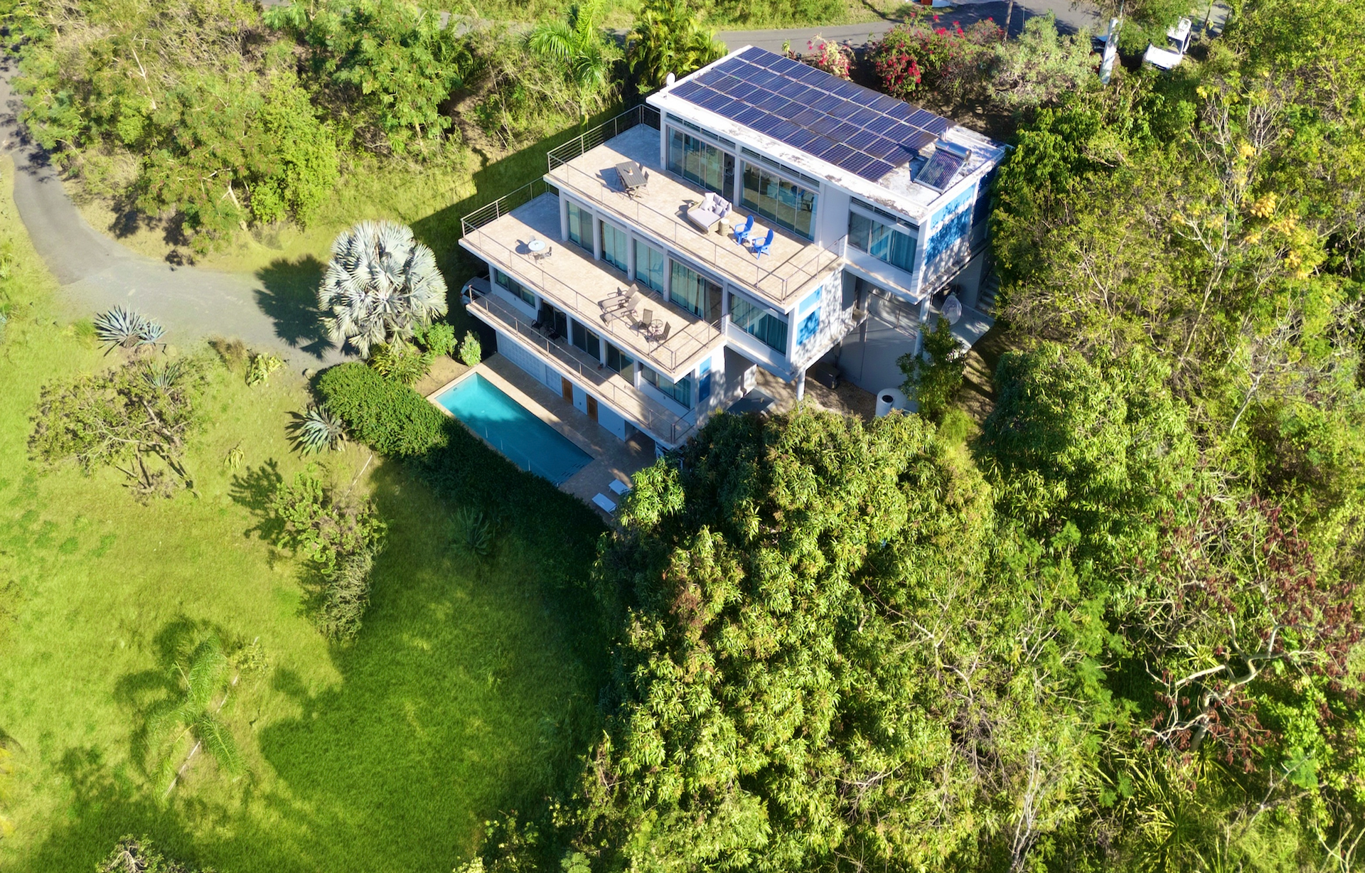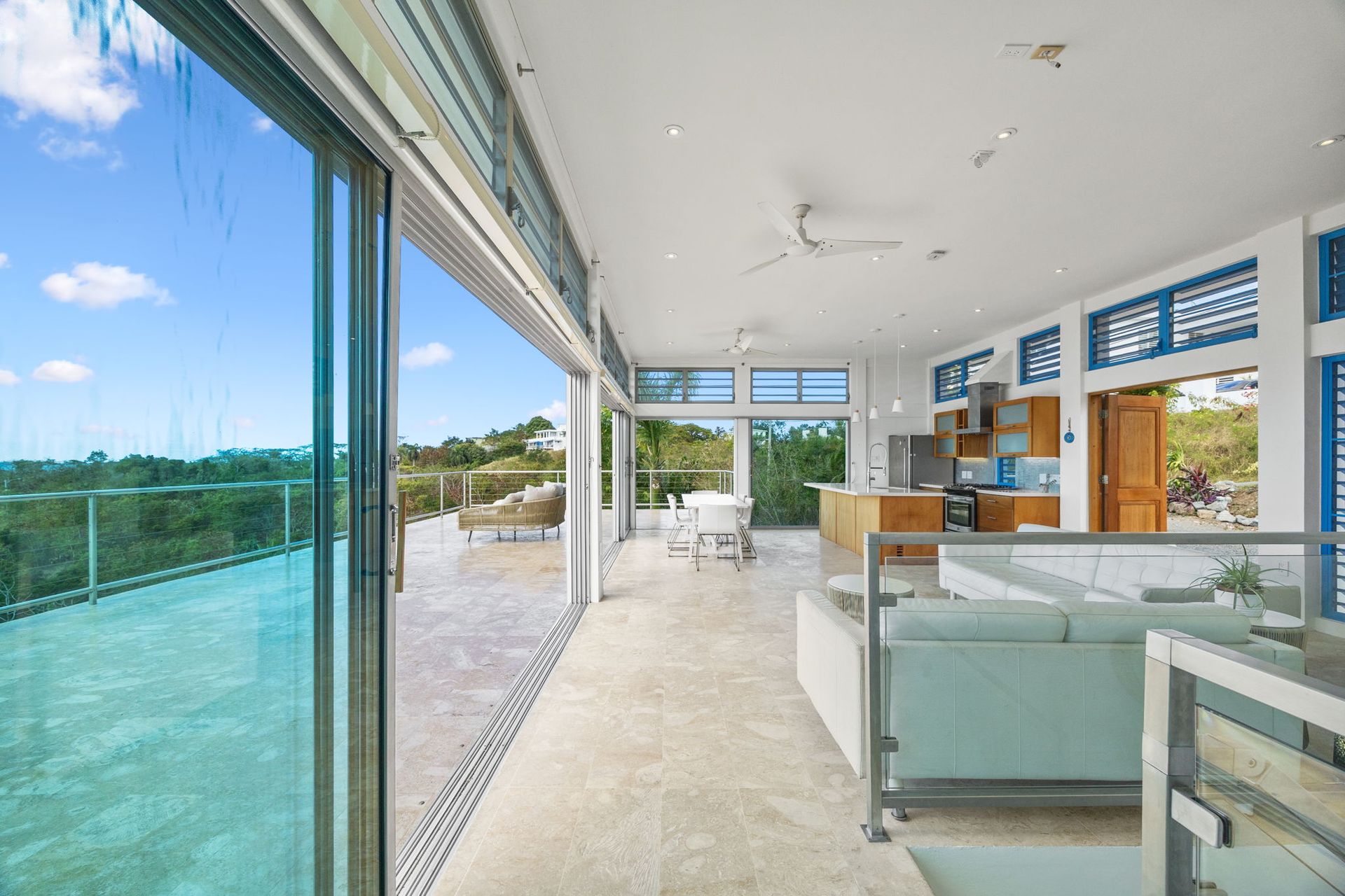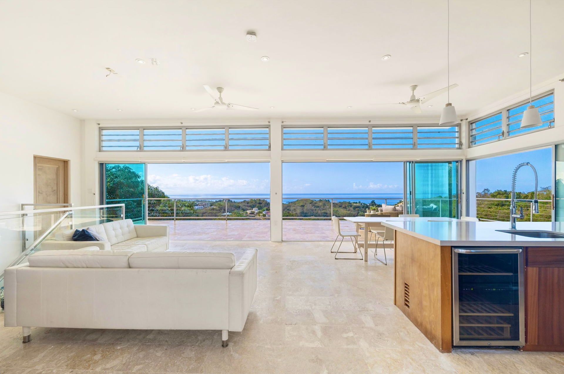 An architectural gem in the heart of La Joya, Rincón, this extraordinary property sits on an acre of land and offers uninterrupted ocean and sunset views. Designed by renowned architect Sarah Strauss, the property is a true work of art, where thoughtful design, abundant natural light, cross ventilation, and seamless indoor-outdoor living come together. The home features a clean, minimalistic interior design that enhances both comfort and functionality while allowing the surrounding landscape and views to take center stage. The residence offers 3,260 square feet of gross living area, complemented by an impressive 3,310 square feet of expansive terraces, thoughtfully designed to maximize outdoor living across every level. The home features 6 spacious bedrooms, 5 full bathrooms, and 1 half bathroom, distributed to ensure privacy and panoramic views throughout. Multiple expansive terraces invite you to relax, entertain, and soak in Rincón's legendary sunsets, while the resort-style saltwater pool and outdoor kitchen create the perfect setting for gatherings and entertainment. Additional highlights include an enclosed car garage, large expansive terraces on each level, space for expansion, and architectural details that elevate the home beyond the ordinary. Whether enjoyed as a private retreat or leveraged as a multi-unit income-producing property, this property offers exceptional versatility and investment potential. Set in one of Rincón's most desirable areas, this is more than a home-it's a statement property that captures the essence of coastal modern luxury, designed with excellence, and island living at its finest.
