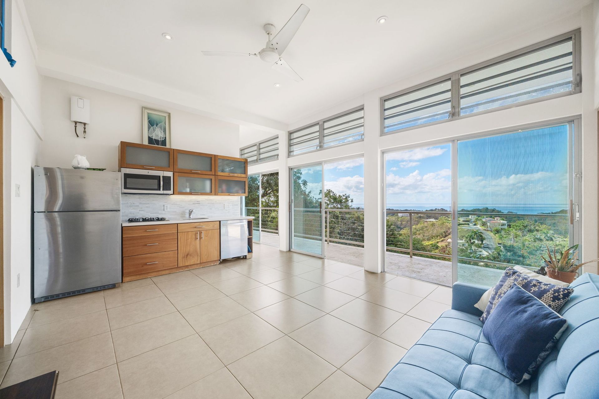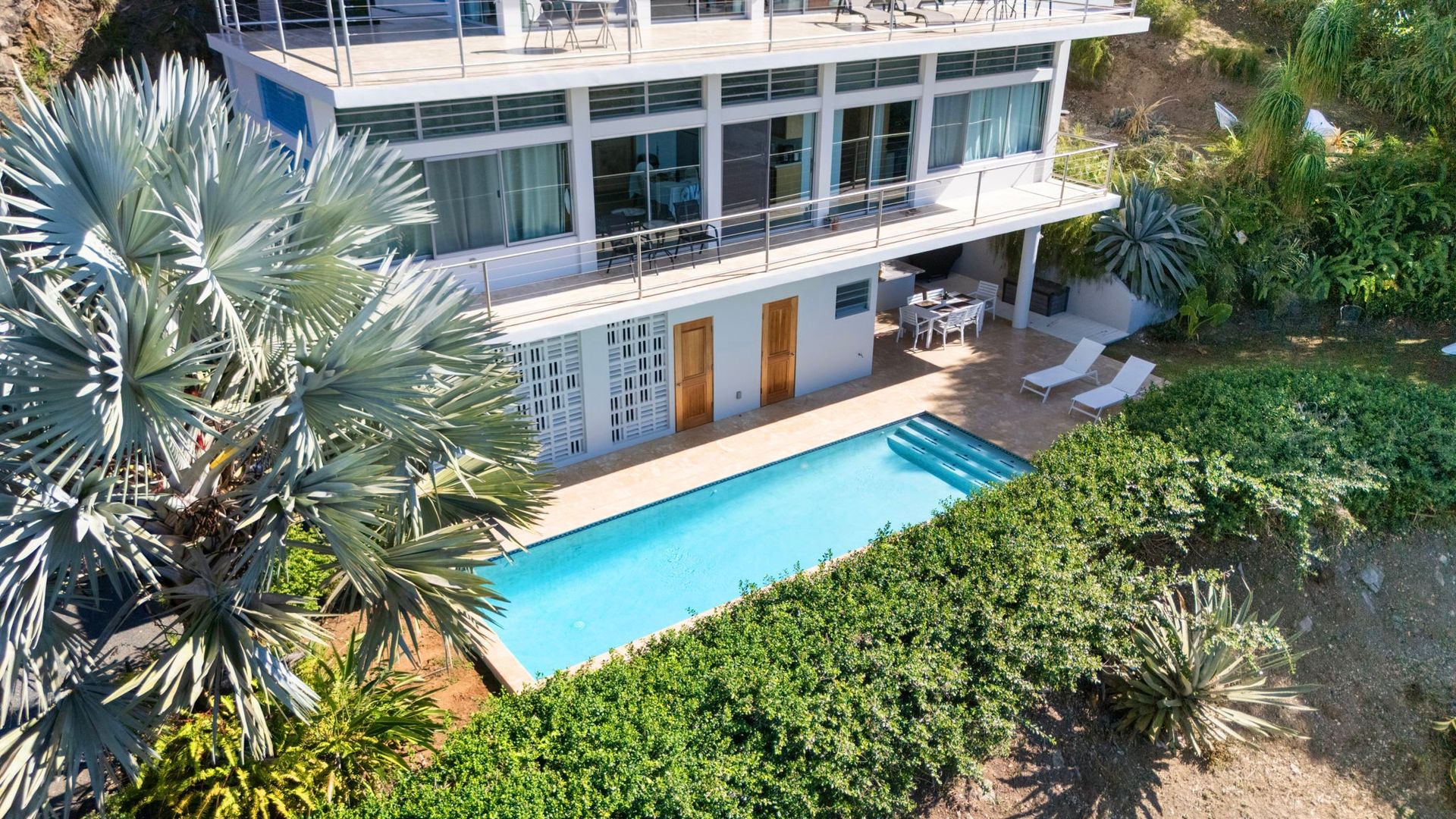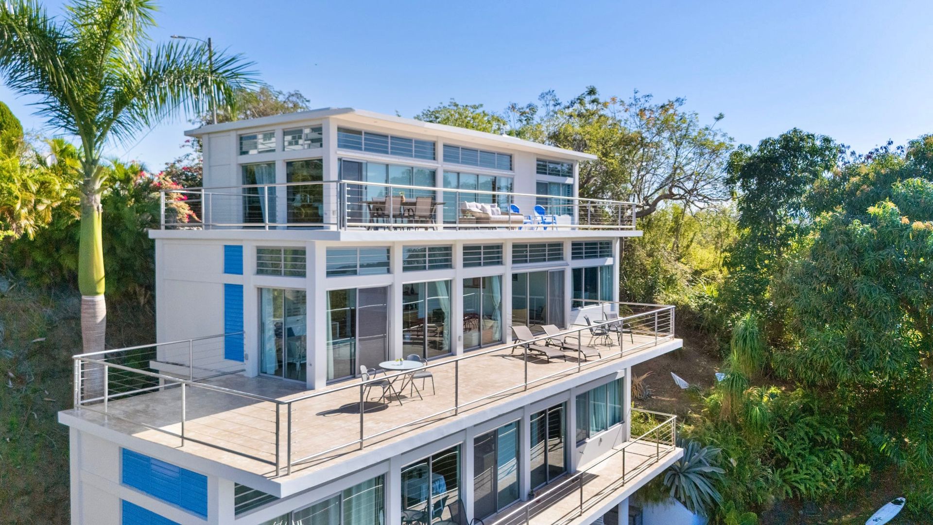 An architectural gem in the heart of La Joya, Rincón, this extraordinary property sits on an acre of land and offers uninterrupted ocean and sunset views. Designed by renowned architect Sarah Strauss, the property is a true work of art, where thoughtful design, abundant natural light, cross ventilation, and seamless indoor-outdoor living come together. The home features a clean, minimalistic interior design that enhances both comfort and functionality while allowing the surrounding landscape and views to take center stage. The residence offers 3,260 square feet of gross living area, complemented by an impressive 3,310 square feet of expansive terraces, thoughtfully designed to maximize outdoor living across every level. The home features 6 spacious bedrooms, 5 full bathrooms, and 1 half bathroom, distributed to ensure privacy and panoramic views throughout. Multiple expansive terraces invite you to relax, entertain, and soak in Rincón's legendary sunsets, while the resort-style saltwater pool and outdoor kitchen create the perfect setting for gatherings and entertainment. Additional highlights include an enclosed car garage, large expansive terraces on each level, space for expansion, and architectural details that elevate the home beyond the ordinary. Whether enjoyed as a private retreat or leveraged as a multi-unit income-producing property, this property offers exceptional versatility and investment potential. Set in one of Rincón's most desirable areas, this is more than a home-it's a statement property that captures the essence of coastal modern luxury, designed with excellence, and island living at its finest.