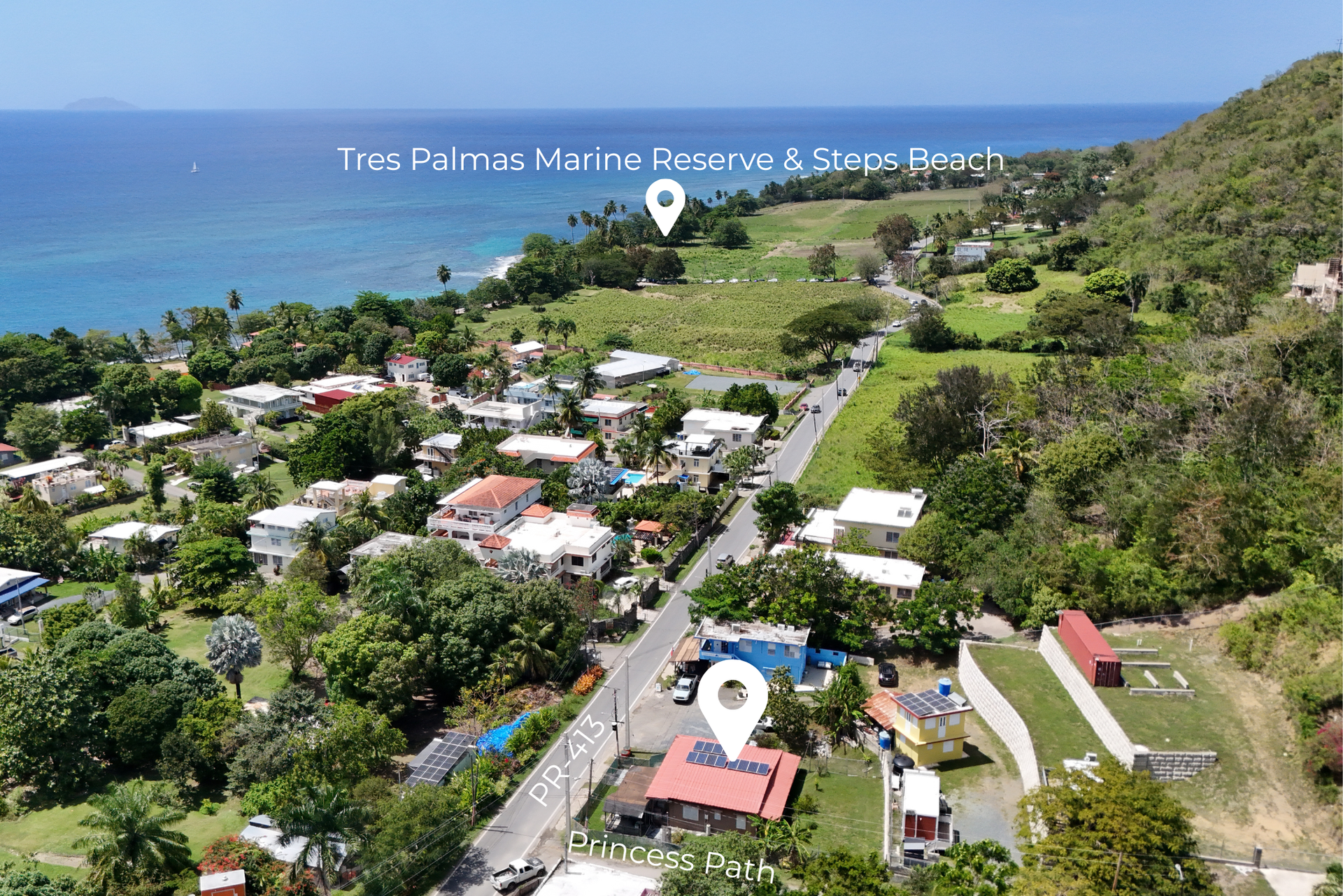 Located in the heart of Ensenada, Rincón, Princess Path House is a fully gated property offering an incredible location just steps from the Tres Palmas Marine Reserve and Steps Beach. Sitting on approximately 458 m², the property features 3 bedrooms, 1 bathroom, and open garage .